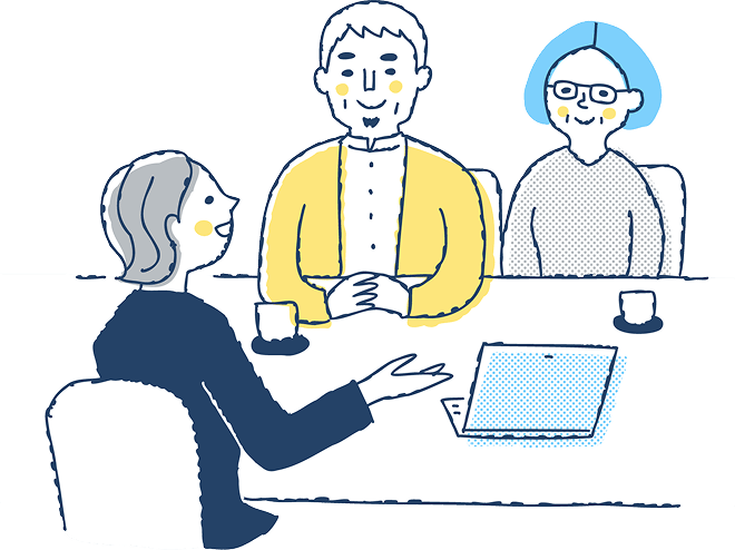 まずは資料請求やお問い合わせから。内容や仕組みについて、スタッフが丁寧にご説明し、不安やご質問にお答えします。